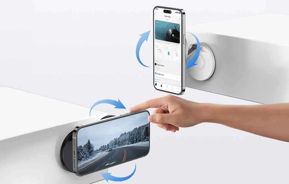 Гъвкавият и сгъваем дизайн с двойна шарнирна конструкция предоставя широк диапазон на регулиране – стойката може да се движи до 180° във вертикална посока и да се завърта на 360°, осигурявайки оптимален ъгъл на гледане за разговори, видеосподеляне, навигация или четене.